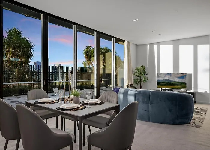 يمكن للضيوف اختيار الإقامة في شقة Opulent Harbourside Sanctuary ملبورن بمساحة 145 مترًا مربعًا أثناء زيارة منطقة دوكلاندز في ملبورن. إنّ إدراج حمام السباحة الداخلي يضمن تجربة ممتعة.